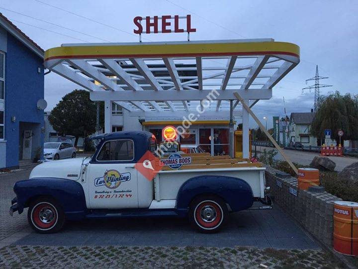 Aus der ursprünglichen Idee, einen überdachten Oldtimer Stellplatz zu bauen entstand diese Retro Tankstelle. Eine Reise zurück in die Wirtschaftswunderzeit