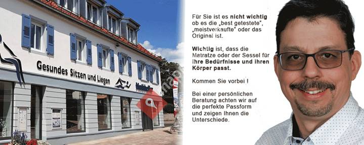 "Wir sind die Spezialisten, wenn es um dasgesunde Sitzen und Liegen geht.In unserer 300 qm großen Ausstellung in Bad Krozingen, unweit Freiburg, finden Sie rückengerechte Möbel,Sessel und Matratzen, die Ihnen ein bequemeres, komfortableres Leben bieten.Unser Fachgeschäft setzt auf flexible und ergonomisch konstruierte Möbel, die sich Ihren Bedürfnissen anpassen.In unserem Möbelfachgeschäft beraten wir Sie kompetent rund um individuelle Sitzmöbel, Matratzen, Betten und Bürostühle.Unser besonderer Service für Sie: Mit dem Vor-Ort-Bettencheck bieten wir Ihnen einen einmaligen und exklusiven Service. Hierbei erklären Ihnen unsere kompetenten Mitarbeiter die Unterschiede zwischen den vielen Möglichkeiten der Schlafoptimierung."