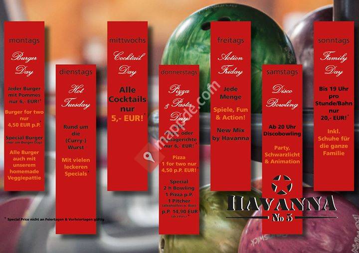 5 Elemente unter einem Dach: Bowling, Billard, Restaurant, Public Viewing und Club Hemingway.