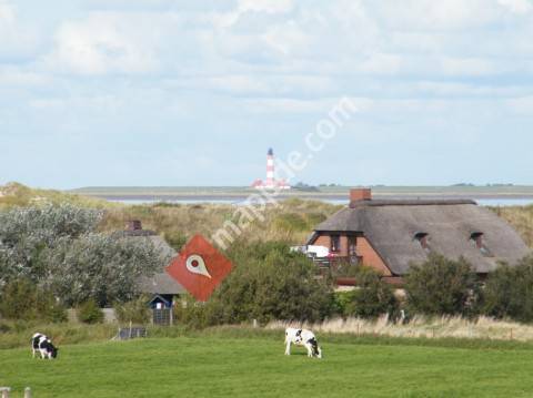 Unser großes Reetdachferienhaus Strandperle für 8 Personen liegt in Traumlage direkt am St. Peter-Ordinger Sandstrand / Deich. Vom Deich aus hat man einen einmaligen Panoramablick über Strand und Nordsee und auf den bekannten Westerhever Leuchtturm.