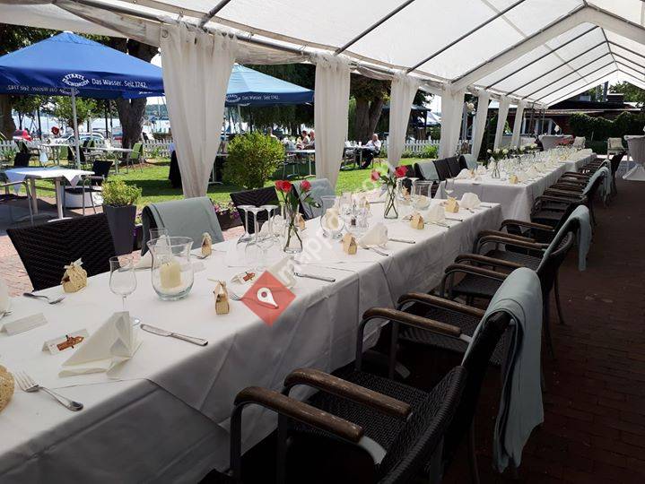 Deutsche Küche, großer Außenbereich mit Blick auf den Wannsee.