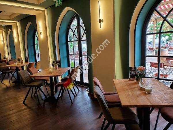 Der Restaurant mit Biergarten war sehr gut besucht.nDas Essen kam zügig und hat gut g...